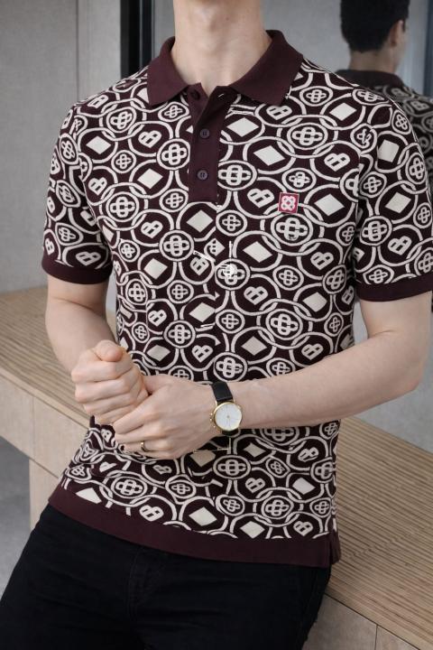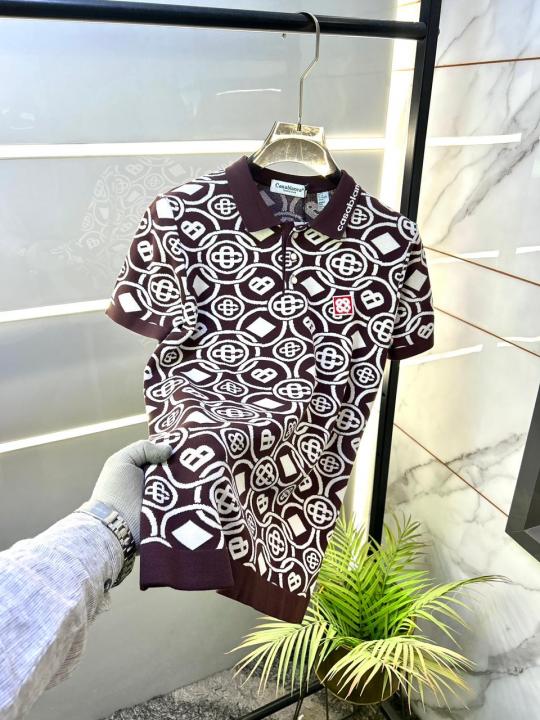 Casablanca Imported knitted Monogram Super Premium Brown Collar Neck Polo T-shirt F3610-BR