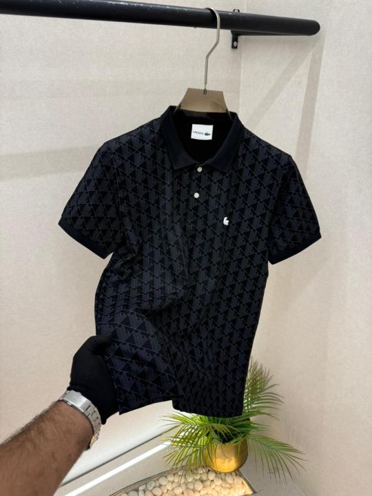 Lacost e Black Monogram Premium Collar Neck Polo T-shirt With Brand Box Packing F3639-BL