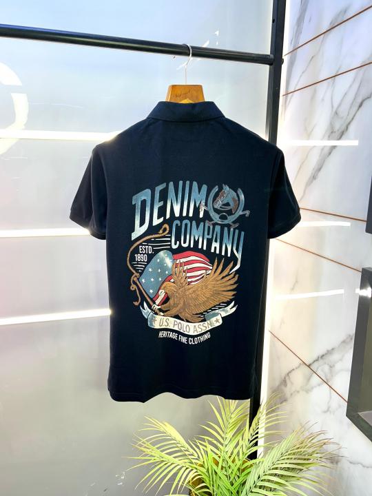 Home T-Shirts Us Polo Black Back Printed Collar Neck Premium T-shirt F2845-BL