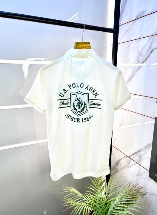 Home T-Shirts Us Polo Off-White Back Printed Collar Neck Premium T-shirt F2845-OF